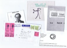 Xerox, bestempelt, mit Aufklebern und Ausschnitten beklebt, dreifach gefaltet, in Briefumschlag, beigelegt eine Auflistung der teilnehmenden Künstler*innen