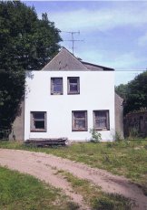 Das vorgestellte Werk entstand im Rahmen des Projekts "Vom Verschwinden, Kunst im öffentlichen Raum in Jamlitz". Es handelt sich um die Teilverschalung der Seite eines verlassenen Hauses mit einem weißen Rechteck welches Aussparungen für die Fenster aufweist. Der Flyer zeigt ausgeklappt die Installation.