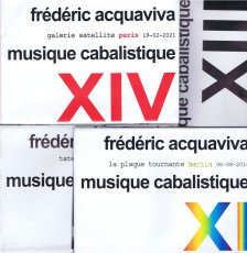 Poster der Reihe "musique cabalistique" von 1 bis 14. Alle sind bedruckt mit mehreren bis sehr vielen Portraits, Farbfotografien, von Menschen die mit Kopfhörern auf einen Bildschirm schauen und auf dessen Inhalt reagieren.