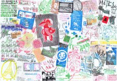 Xerox, bestempelt, mit Aufklebern beklebt, dreifach gefaltet, in Briefumschlag, beigelegt eine Auflistung der teilnehmenden Künstler*innen, Zettel mit Aufruf zur Einsendung von Material über Hamster