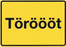 Schild im klassischen Ortsschildstil mit der Aufschrift "Töröööt".