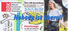 • Flyer zu einer LAB Ausstellung mit Brandstifter und Bernd Schneider vom 16.-31.05.2025.