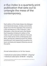 e-flux Index is a quarterly print publication that sets out to untangle the mess of the contemporary.